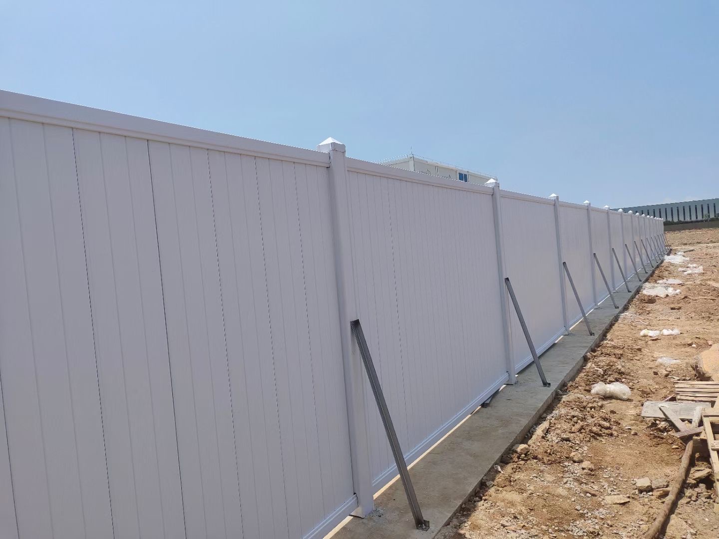 然而,pvc圍擋在構件的連接上,采用獨特加工設備,把連接地方改為塑料連接件,加塑料孔蓋,徹底解決了最后的銹點和不牢固,是真正意義上的永不銹蝕圍擋,并具有不導電與防爆性能。采用完全創新的榫連接方式,使豎桿與橫桿,橫桿與立柱的連接徹底解決了普通圍擋在螺絲連接部位仍會迅速銹蝕的重大缺點。